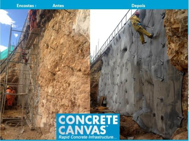 Com muita satisfação, venho informar que nos tornamos revenda e instaladora da manta cimenticia ( CONCRETE CANVAS). Passarei a divulgar algumas soluções com este produto. Neste caso, vemos a contenção de encosta, utilizando-se chumbadores e fixando a manta cimenticia, com placa e porca. Uma solução limpa, rápida e prática.
